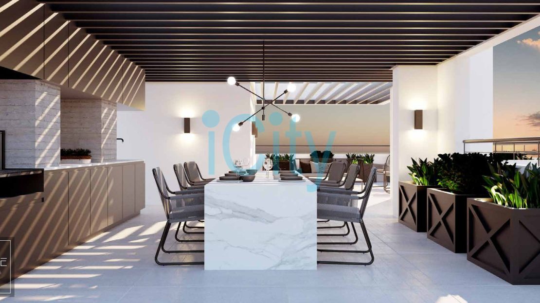 Equipamiento y Áreas Comunes: El edificio cuenta con: Piscina al aire libre, Gourmet Room, Sky Lounge, Fitness Center, Cowork, Pet Spa y Bike Zone. Además, dispone de 4 ascensores con tecnología Oxyion para purificación de aire.